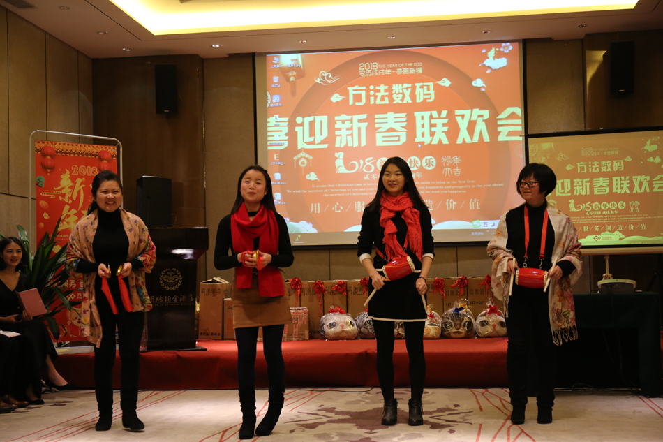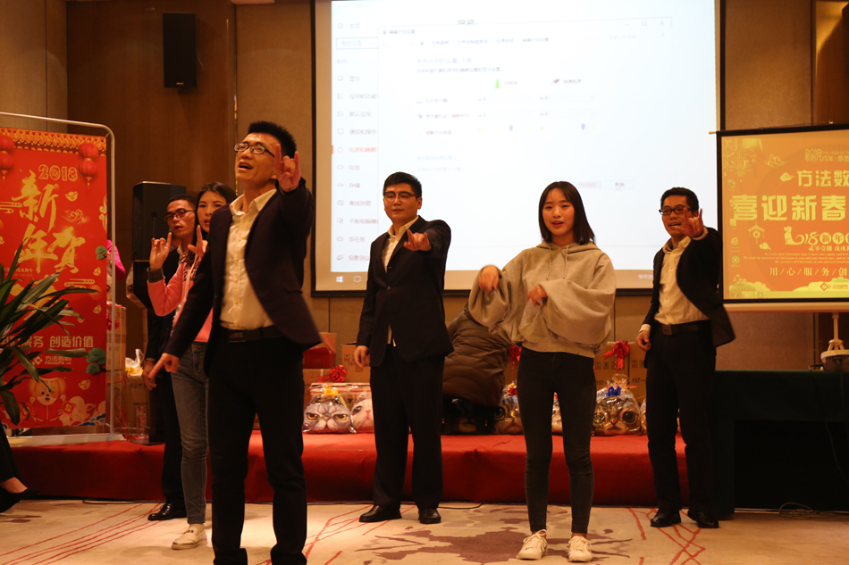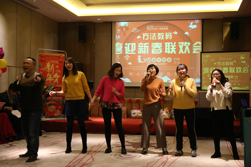 中午的午餐,大家推杯換盞,開懷暢飲,共話新年。伴隨著歡快的歌舞,2018年方法數(shù)碼迎新聯(lián)歡會也正式拉開了序幕。多才多藝的方法人,給我們展現(xiàn)了一場場別開生面的表演,歌曲、舞蹈、小品等形式多樣的文藝節(jié)目,場場都獲得滿堂喝彩,掌聲不斷。